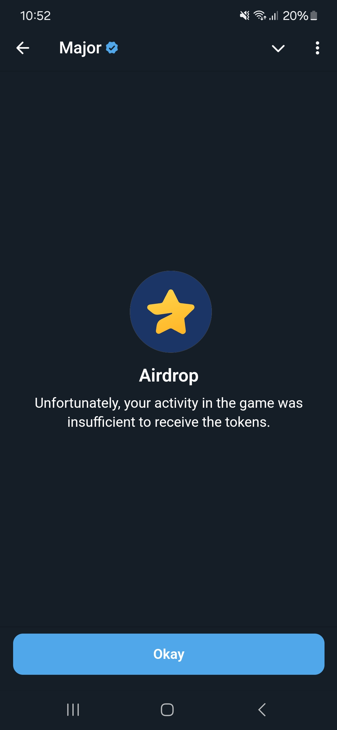 Um das Thema Hausschuhe fortzusetzen ... Ich habe beschlossen, heute zu Major zu gehen und mir den Airdrop anzusehen. Im Allgemeinen bin ich JEDEN Tag in die Anwendung gegangen, habe Combos eingegeben, Aufgaben erledigt, aber nicht gespendet. Und was am Ende? Meine Aktivität reichte nicht für den Airdrop😡