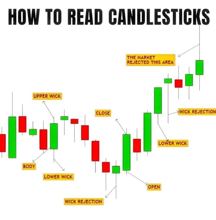 Der Körper (farbiger Teil) zeigt den Bereich zwischen dem Öffnungs- und Schlusskurs an, während die Schatten (Wicks) Preisablehnungen an den Extremen signalisieren.