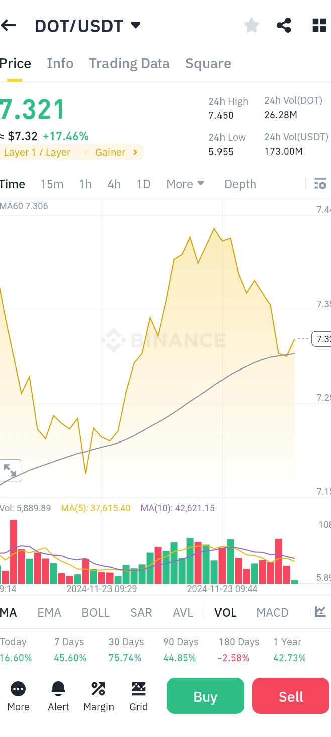 Einstieg: Erwägen Sie den Einstieg bei etwa 7,30 $ (aktueller Preis). Wenn der Preis auf den MA60 (7,306 $) zurückfällt, wäre dies ein guter Bestätigungspunkt für den Einstieg.