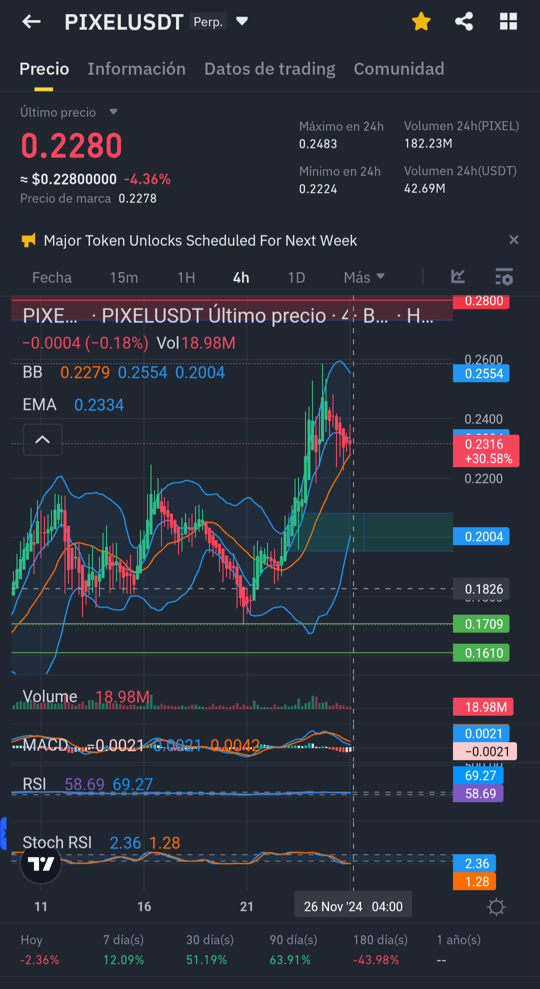 Vollständige Analyse des 4-Stunden-Timings (Pixel/USDT):