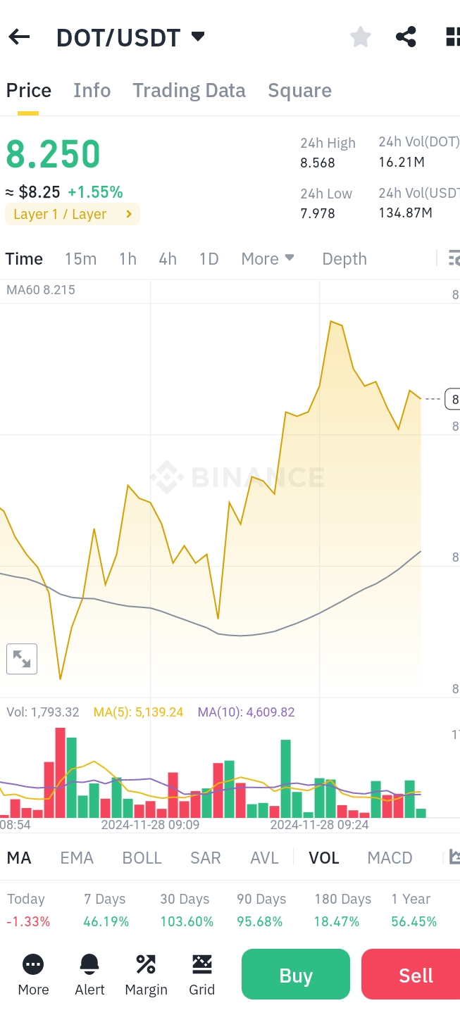 Preis: $8,250, zeigt einen leichten Aufwärtstrend (+1,55%).