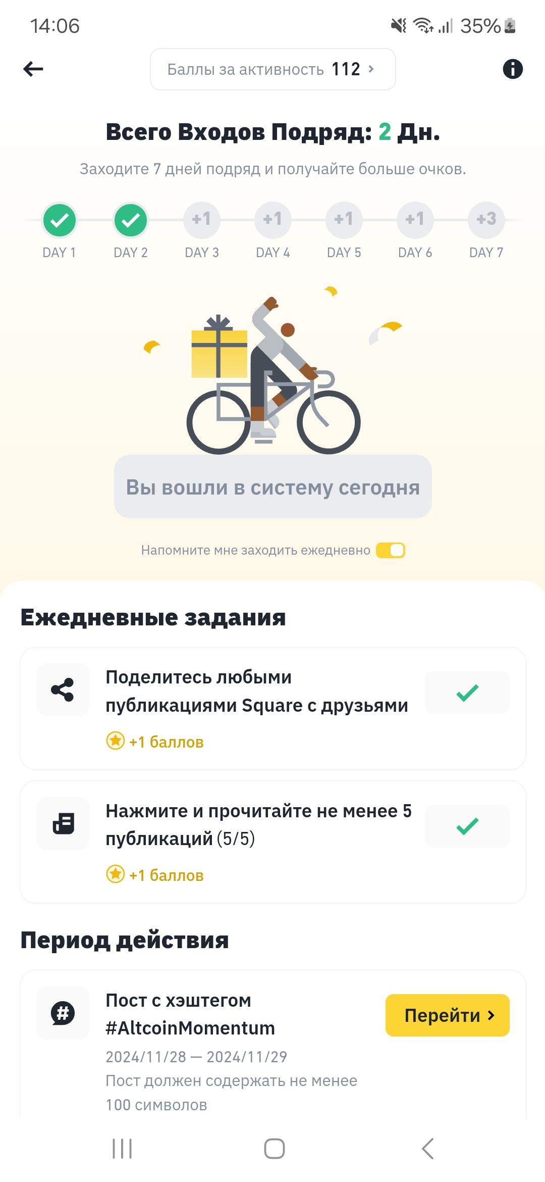 Und wenn Sie jeden Tag Beiträge mit einem bestimmten Hashtag schreiben, erhalten Sie jeden Tag +10 Punkte.