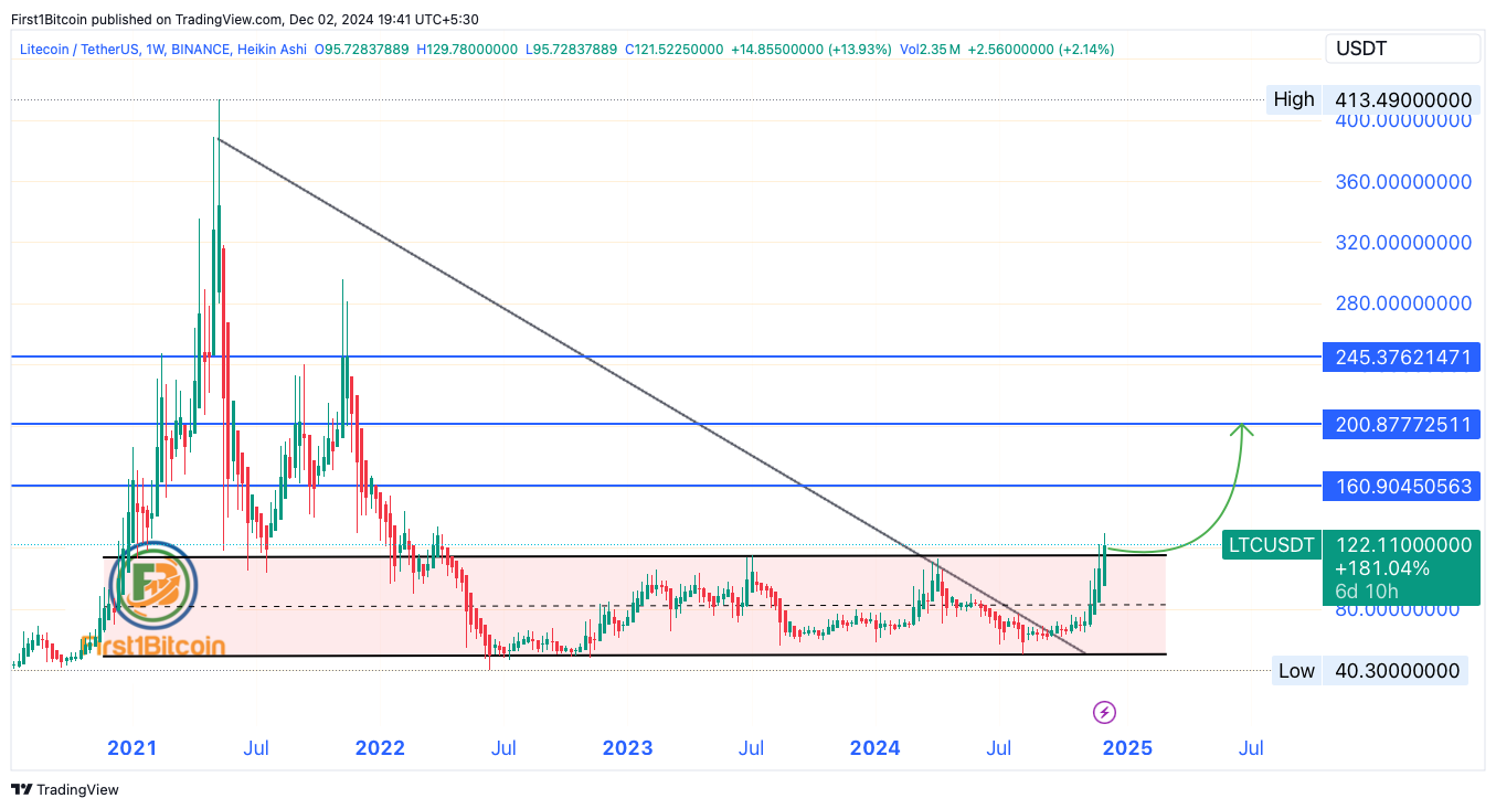 Litecoin hat +181% gewonnen und bricht aus einer langfristigen Trendlinie aus. Könnte es die nächsten Widerstandslevel erreichen?