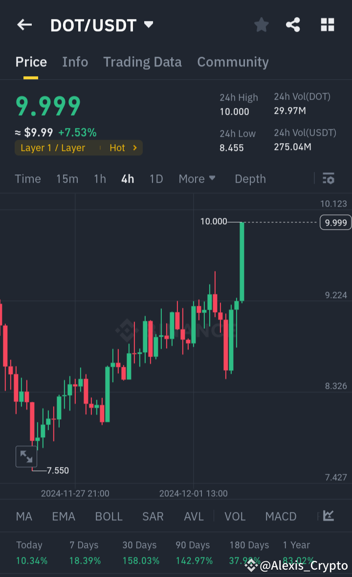 Mit bullischem Momentum und steigendem Handelsvolumen ist DOT bereit für einen potenziellen Anstieg, wenn es entscheidend über 10 $ hinausgeht. Bleiben Sie wachsam für Marktentwicklungen, während DOT sich diesem wichtigen Niveau nähert!