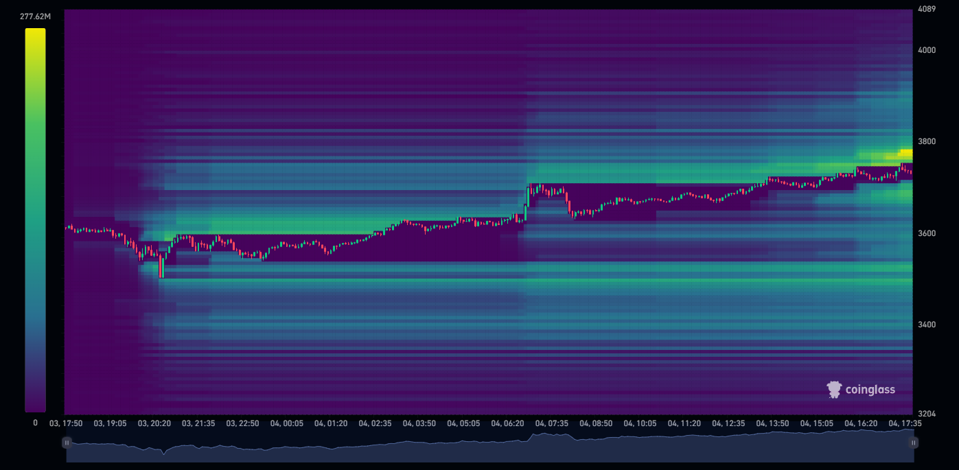 Die Liquiditäts-Hitzekarte sagt, dass es eine enorme Short-Liquidität in Ethereum gibt. Wie Sie wissen, befindet sich Ethereum in einem Cup-and-Handle-Muster, sodass es Short-Trader liquidieren wird. Um Kraft für einen weiteren Anstieg zu sammeln.