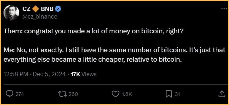 Cz: Nicht wirklich, ich besitze immer noch Bitcoin, nur ist alles andere im Vergleich zu Bitcoin billiger