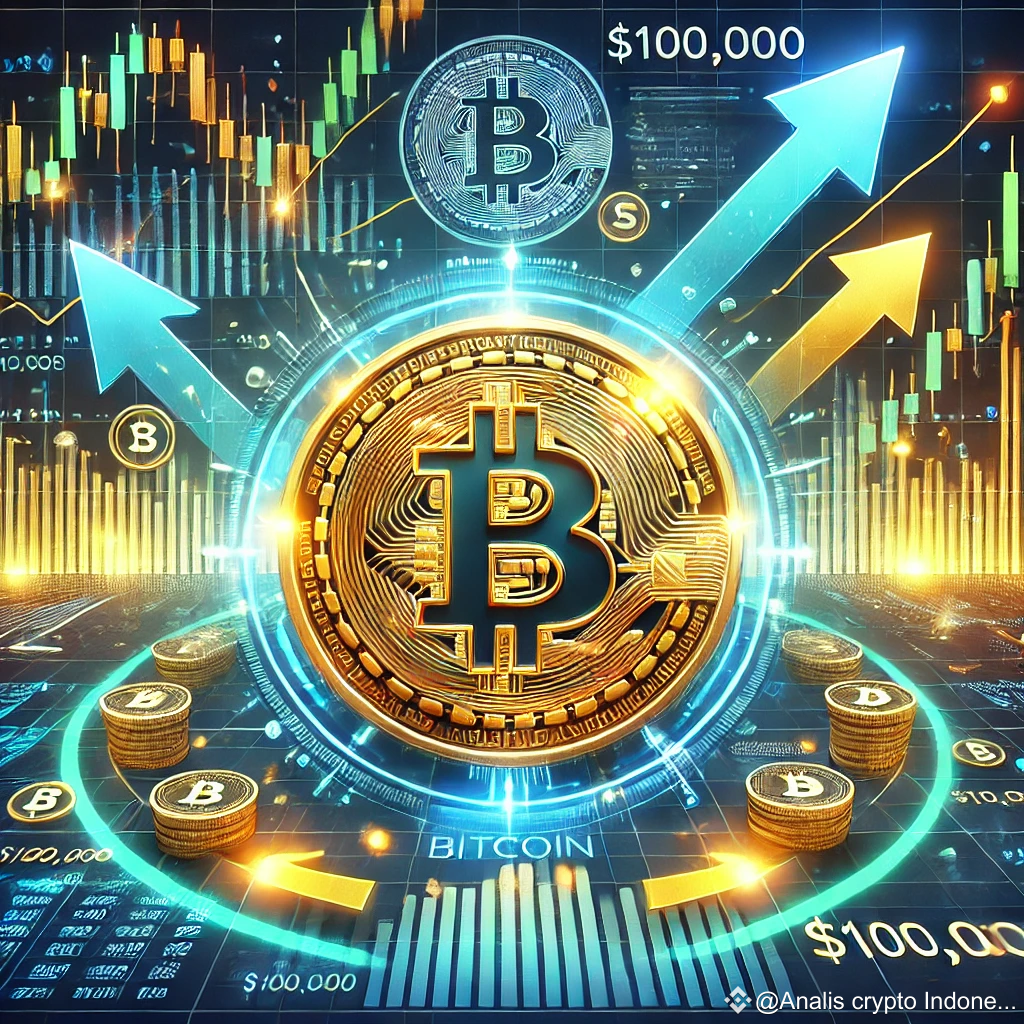 Bitcoin saat ini berada dalam tren bullish yang kuat, namun harga mendekati resistensi psikologis $100,000.