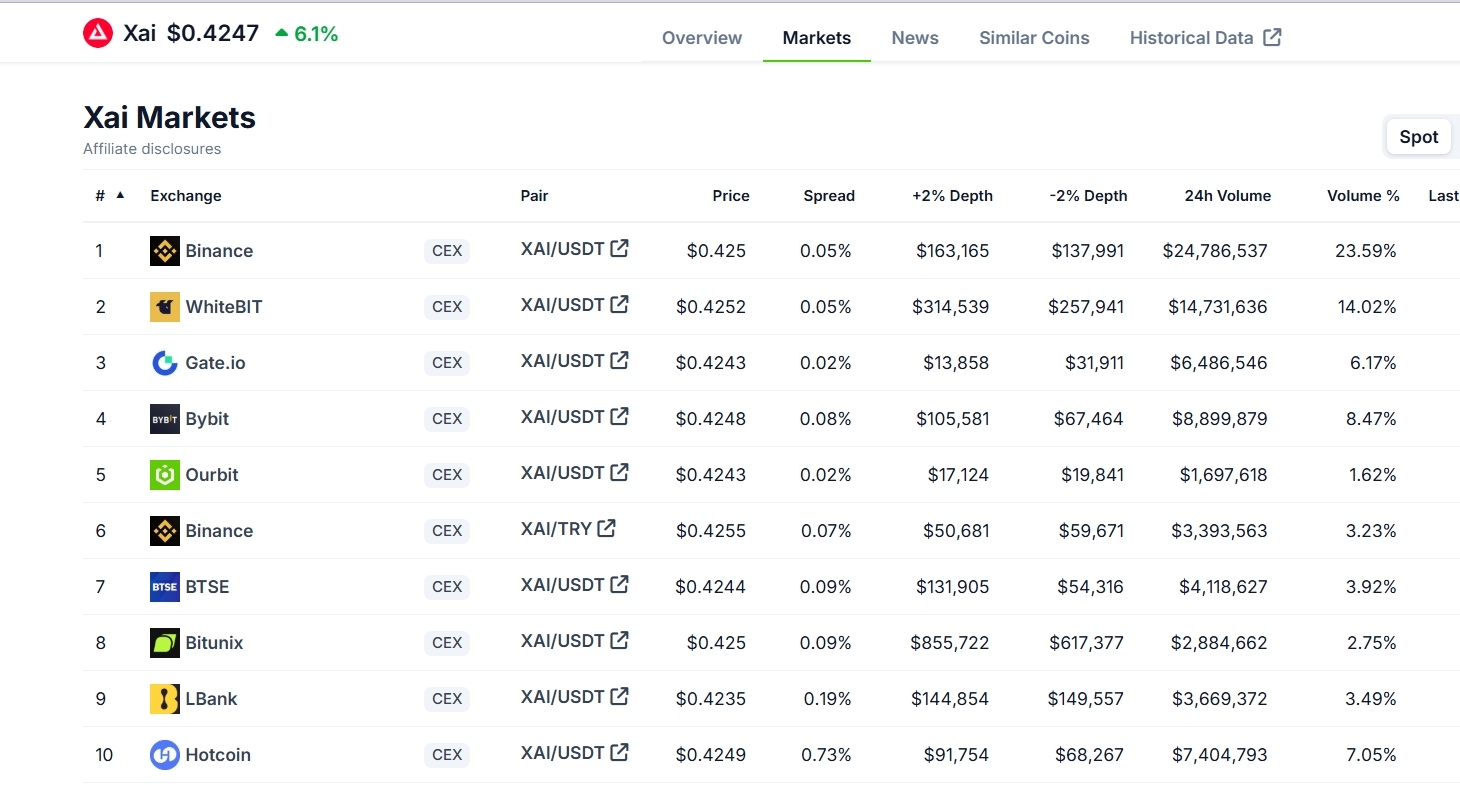 XAI ist an großen Börsen wie Binance gelistet, was eine höhere Liquidität und Marktvertrauen bietet. Gelistete Projekte ziehen in der Regel mehr Kapital an, was zu einem Anstieg des Preises führt! 📈@XAI_GAMES