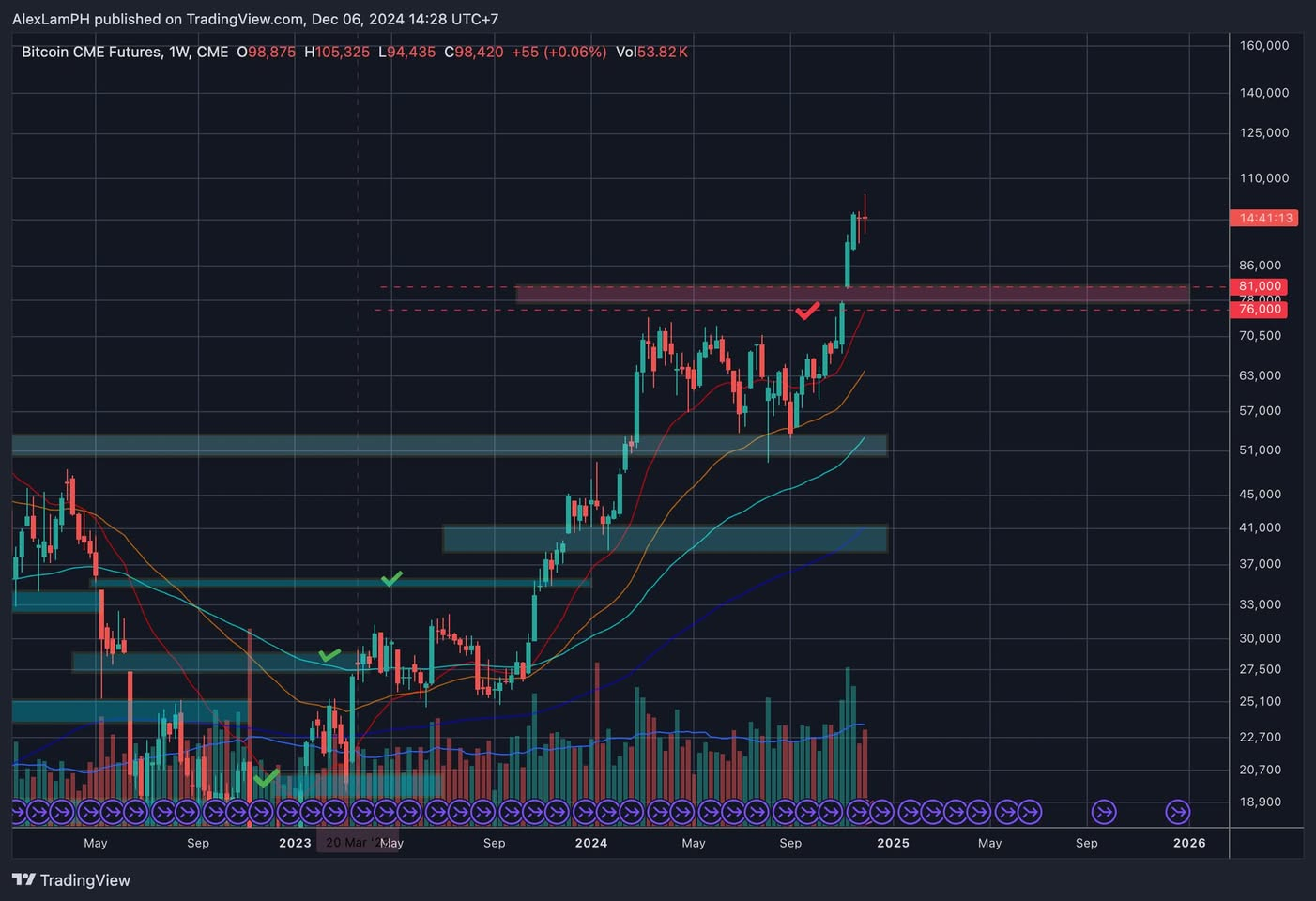 Auf CME-Futures hat dieser Bereich eine Preislücke geschaffen, und historisch neigen die Bitcoin-Preise dazu, diese Lücken im Laufe der Zeit zu füllen.