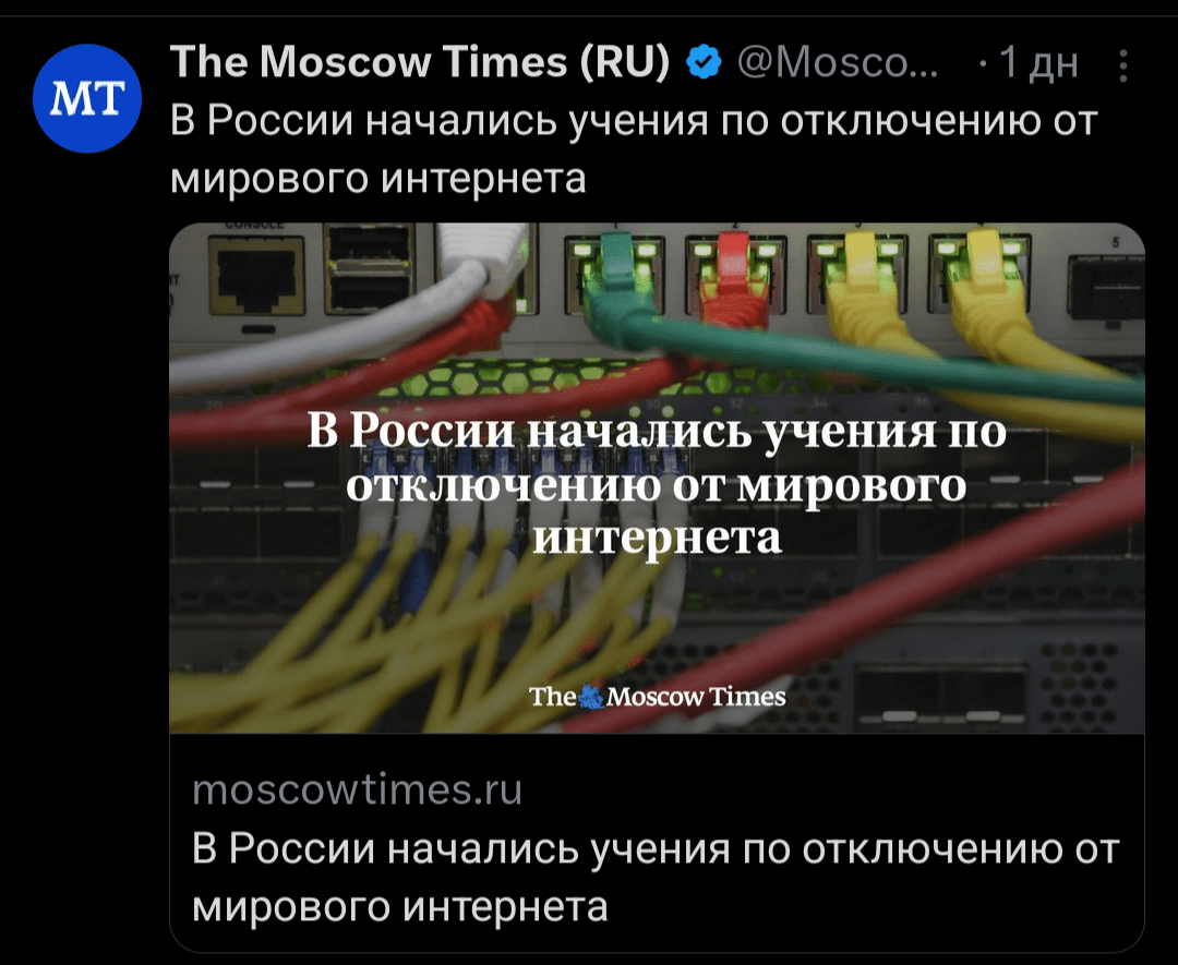 Der Screenshot ☝️ besagt, dass Russland sich darauf vorbereitet, das globale Internet abzuschalten.