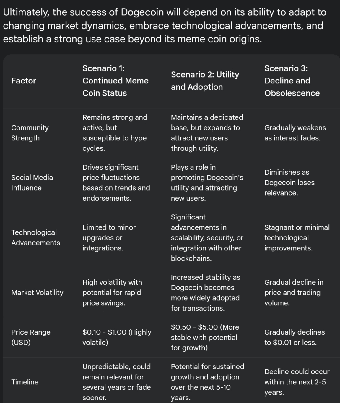 Letztendlich wird der Erfolg von Dogecoin von seiner Fähigkeit abhängen, sich an sich ändernde Marktdynamiken anzupassen, technologische Fortschritte zu nutzen und einen starken Anwendungsfall über seine Ursprünge als Meme-Münze hinaus zu etablieren.