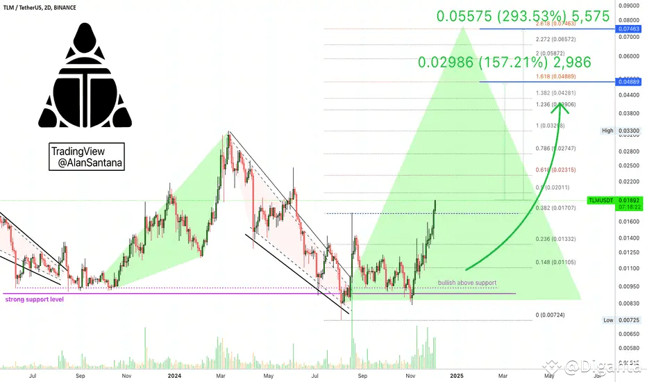 TLMUSDT (Alien Worlds) hat kürzlich ein wichtiges Widerstandsniveau durchbrochen, was auf einen möglichen bullischen Ausbruch hindeutet. Der Chart zeichnet ein schönes Bild mit grünen Kerzen und steigendem Volumen, was auf starken Kaufdruck hinweist.