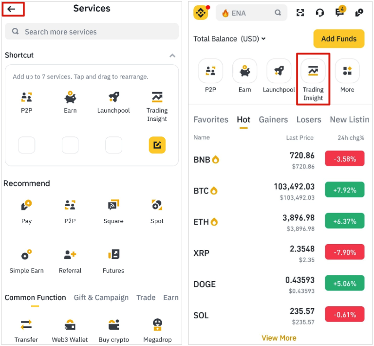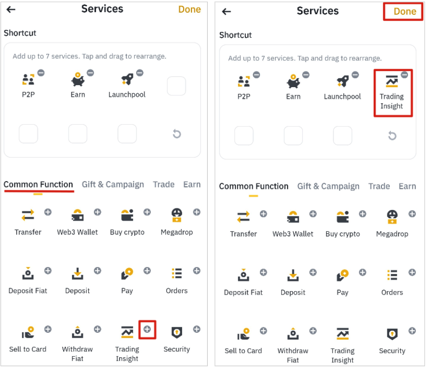Unter dem Tab [Gemeinsame Funktion] wählen Sie [Trading Insight] und fügen Sie es zur Verknüpfung hinzu.