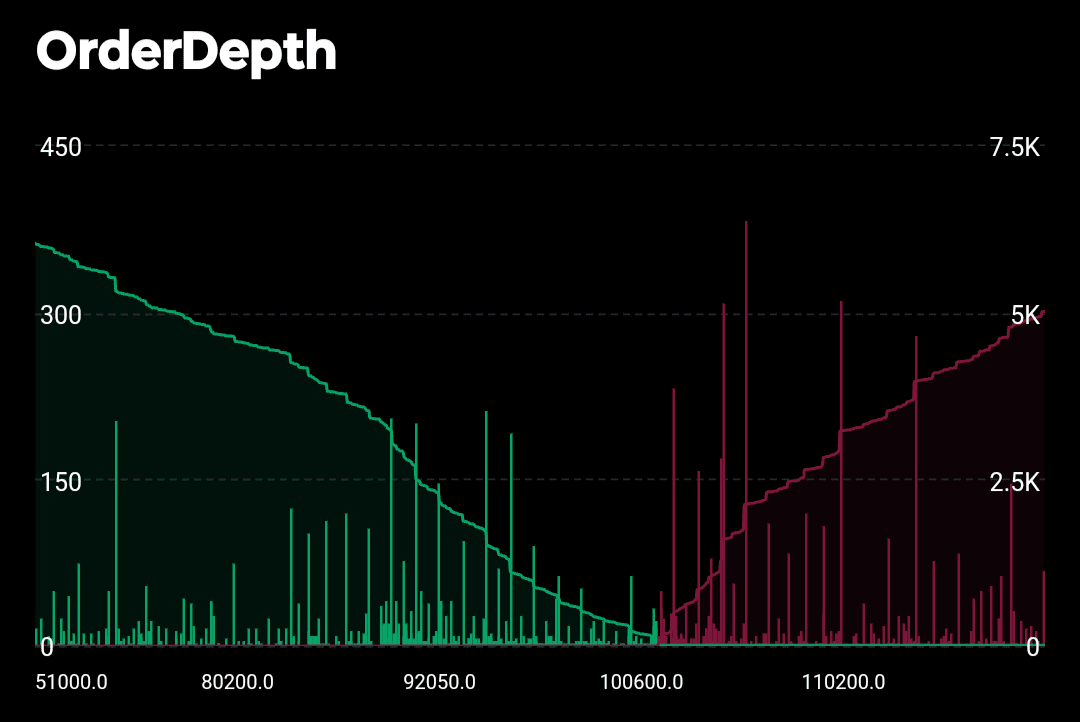 Auf dem Orderbuch-Chart können wir eine große Anzahl von Verkaufsaufträgen bei Niveaus nahe 102.742,94 USDT (ungefähr 300 Aufträge) sehen, was darauf hindeutet, dass es in diesem Bereich großen Widerstand gibt.