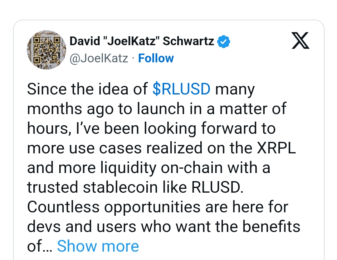In seinem Tweet erklärte Schwartz: „Seit der Idee von $RLUSD vor mehreren Monaten bis hin zum Start innerhalb weniger Stunden habe ich mich darauf gefreut, dass sich mehr Anwendungsfälle auf dem XRPL realisieren und mehr Liquidität on-chain mit einem vertrauenswürdigen Stablecoin wie RLUSD entstehen. Unzählige Möglichkeiten sind jetzt für Entwickler und Nutzer da, die die Vorteile von XRPL, RLUSD und XRP nutzen möchten.“