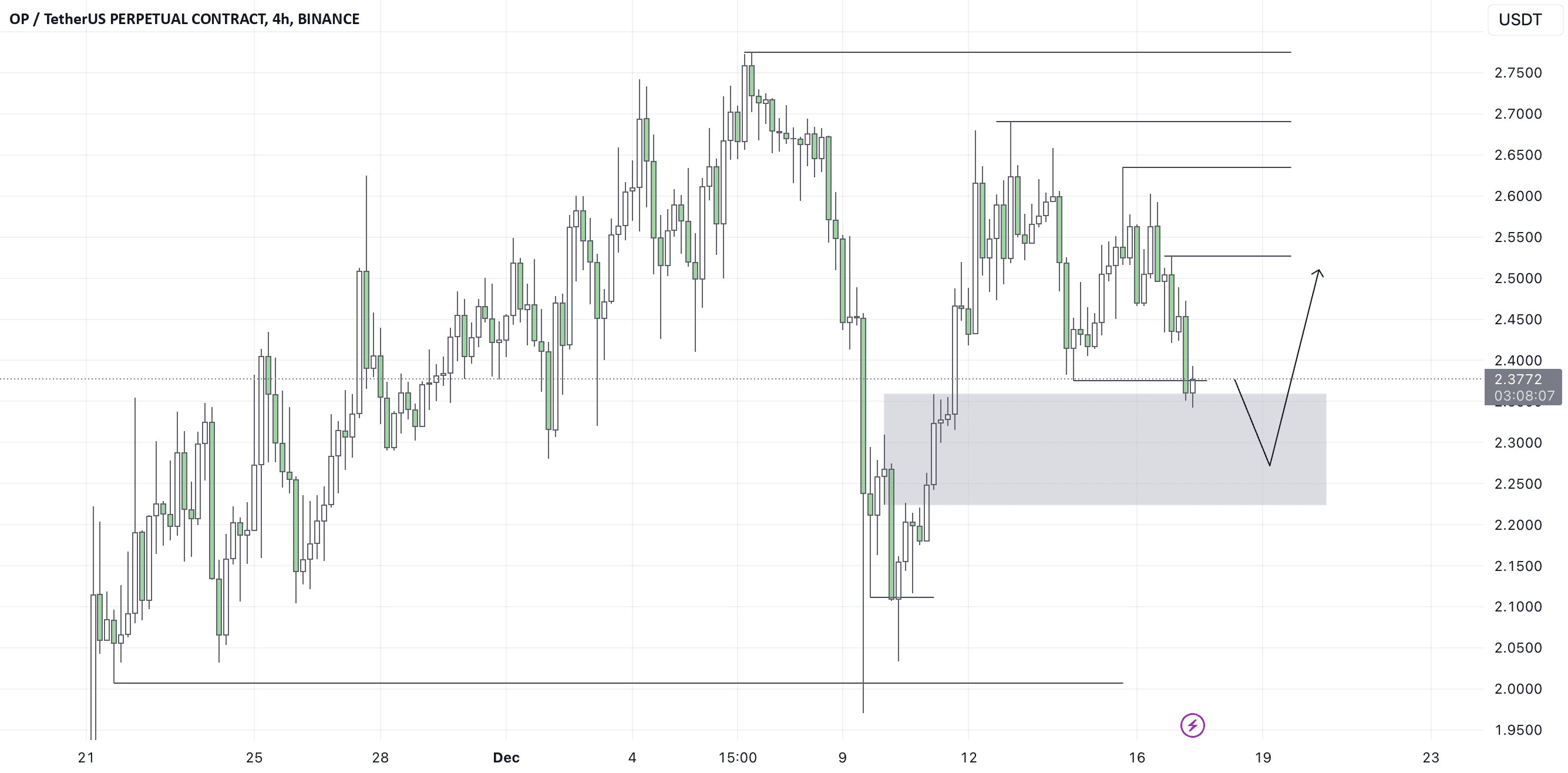 Suche nach einer Bestätigung, um eine Long-Position zwischen $2,3585 und $2,2247 zu eröffnen.