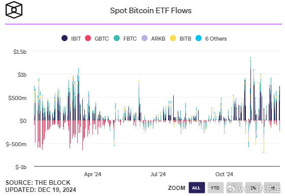 Obwohl die Marktmood kurzfristig eher pessimistisch erscheint, fließen die Gelder in den US-Spot-Bitcoin-ETF weiterhin stark. Laut Daten von The Block verzeichnete der Bitcoin-Spot-ETF am Mittwoch erneut einen Zufluss von 275,3 Millionen US-Dollar, was den 15. aufeinanderfolgenden Tag mit Kapitalzuflüssen markiert und die Gesamtsumme auf über 6,7 Milliarden US-Dollar ansteigen lässt. Ähnlich verzeichnete der Spot-Ethereum-ETF einen Nettogeldzufluss von 2,5 Millionen US-Dollar und erzielte an 18 aufeinanderfolgenden Tagen Kapitalzuflüsse, wobei der Gesamtbetrag fast 2,5 Milliarden US-Dollar erreicht.