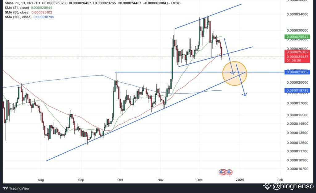 Tuy nhiên, xu hướng tăng giá dài hạn từ mức thấp nhất vào mùa hè năm 2024 vẫn không bị phá vỡ đối với SHIB. Tuy nhiên, sự sụt giảm dưới đường xu hướng quan trọng này có khả năng dẫn đến một giai đoạn giảm giá tiếp theo.