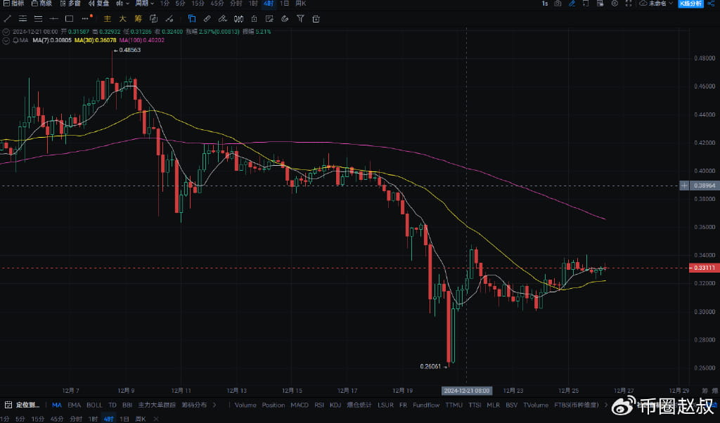 Unterstützung und Widerstand: Die aktuelle Unterstützungsmarke liegt bei 0,32 (MA7-Position), der entscheidende Widerstand liegt bei 0,36 (MA30-Widerstandsbereich).