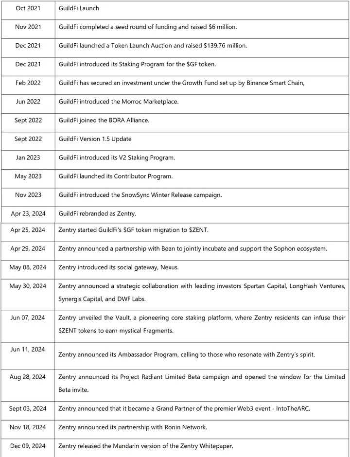 Während der GuildFi-Epoche baute das Projektteam ein umfangreiches Netzwerk von Spielerressourcen auf und pflegte bedeutende Beziehungen zu verschiedenen Spieleentwicklern. Dennoch behinderte die Stagnation der Entwicklung des breiteren GameFi-Sektors anschließend das Wachstum der Gaming-Gilden. Ende 2023 strebte GuildFi einen strategischen Übergang an, der als „Projekt Z“ bezeichnet wurde. Dies gipfelte im April 2024 in der offiziellen Einführung von Projekt Z oder Zentry.