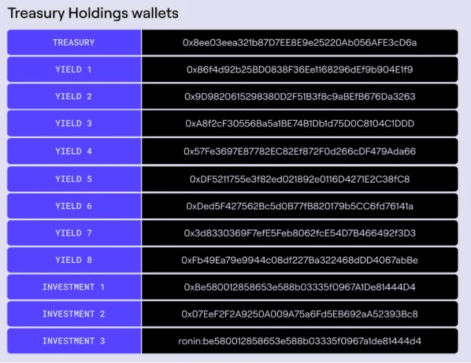 Die Treasury Holdings-Wallets von Zentry werden in Abbildung 4–3 unten angezeigt: