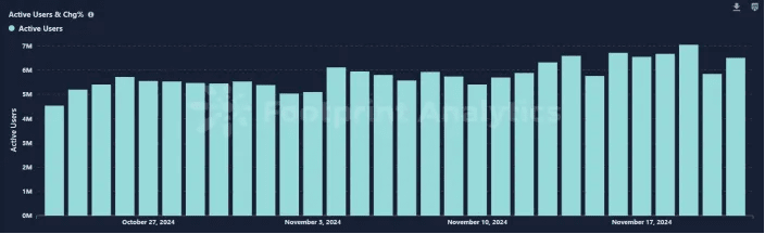 Es ist ein erkennbarer Aufwärtstrend bei der Anzahl der aktiven Benutzer zu beobachten, die sich mit Blockchain-Spielen beschäftigen. Derzeit liegt die Anzahl der täglich aktiven Benutzer im GameFi-Sektor bei etwa 6,53 Millionen, was eine deutliche Verbesserung gegenüber den im Jahr 2023 beobachteten aktiven Benutzerzahlen darstellt und den vorherigen Höchststand von 2 Millionen täglich aktiven Benutzern übertrifft, der während der vorherigen Bullenläufe im Sektor verzeichnet wurde. Dieser bemerkenswerte Anstieg der täglich aktiven Benutzer begann ernsthaft gegen Ende 2023 und deutet auf ein gesteigertes Interesse und Engagement im GameFi-Sektor hin.
