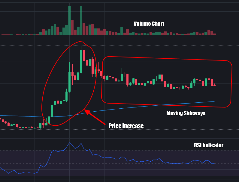 2. Volumenanalyse: Überprüfen Sie das Handelsvolumen während der seitwärts Bewegung. Wenn das Volumen abnimmt, könnte dies auf mangelndes Interesse hindeuten, was zu einer Abwärtsbewegung führen könnte. Umgekehrt könnte ein steigendes Volumen darauf hindeuten, dass Händler ansammeln, was möglicherweise zu einem Aufwärtsausbruch führt.