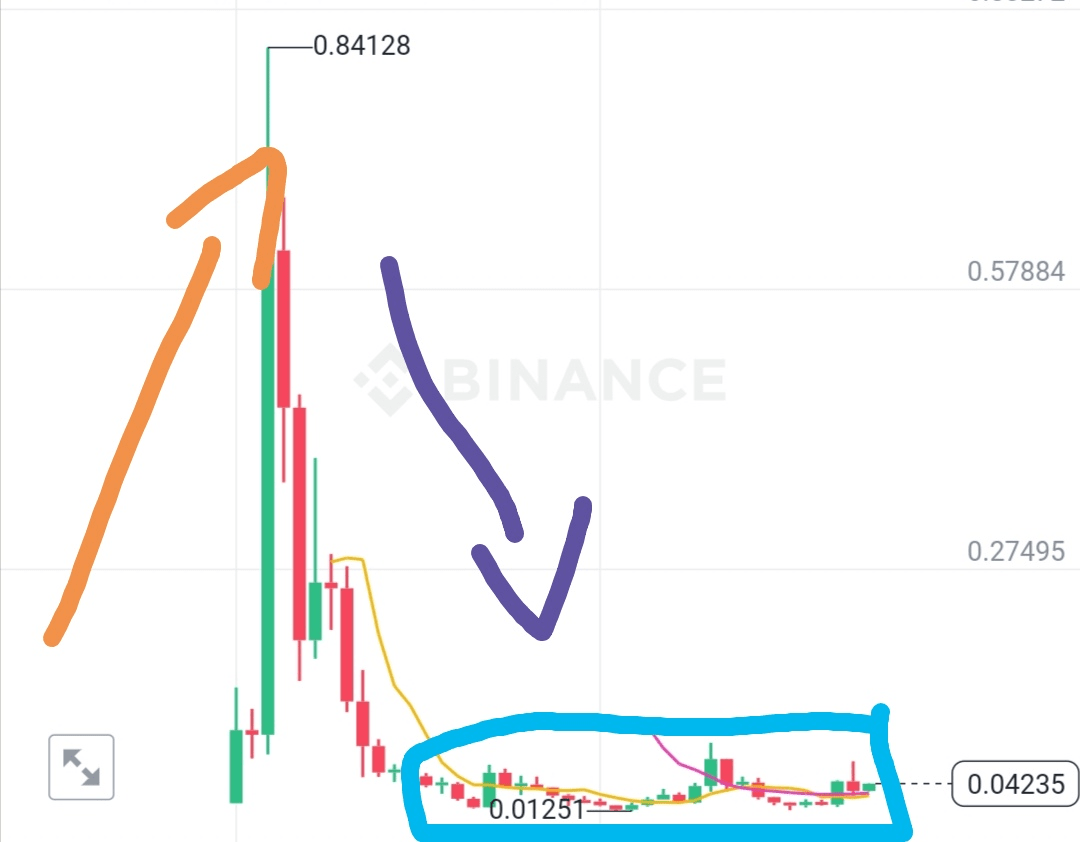 Um ein vollständiges Bild zu erhalten, zeigt der orangefarbene Pfeil, wie in der Bewegung im Monatsrahmen gezeigt, den Aufwärtspfad der Währung an ⬆️ Am Anfang, und das ist bei jeder Währung zu Beginn der Fall, wenn sie eine hohe Nachfrage hatte „Nachfrage “, oder kurz gesagt, sein Projekt hatte einen starken Anfang. Sie werden einen Anstieg der Währung bemerken, natürlich sind die Preise schwer vorherzusagen.