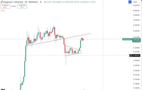 Analysten schlagen vor, dass Dogecoin bald die Widerstandsmarke von 0,41 $ erneut testen könnte. Ein Ausbruch über diesen Schwellenwert könnte den Weg ebnen, dass DOGE sein vorheriges Allzeithoch (ATH) von 0,75 $ herausfordert oder sogar übertrifft.Unterstützung bei 0,30 $ hält stark: