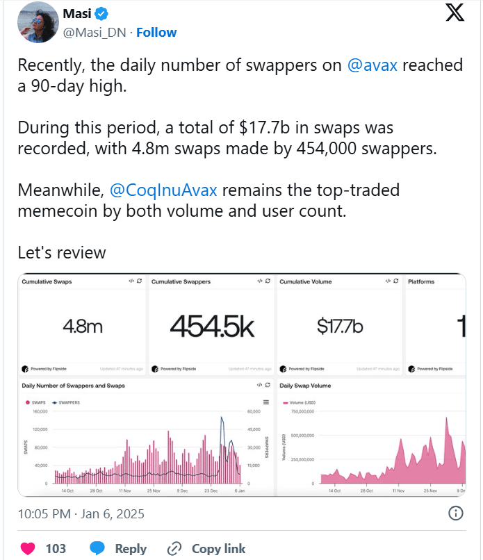 Ein 90-Tage-Hoch bei der täglichen Swapper-Aktivität unterstreicht die robuste DeFi-Infrastruktur von Avalanche.