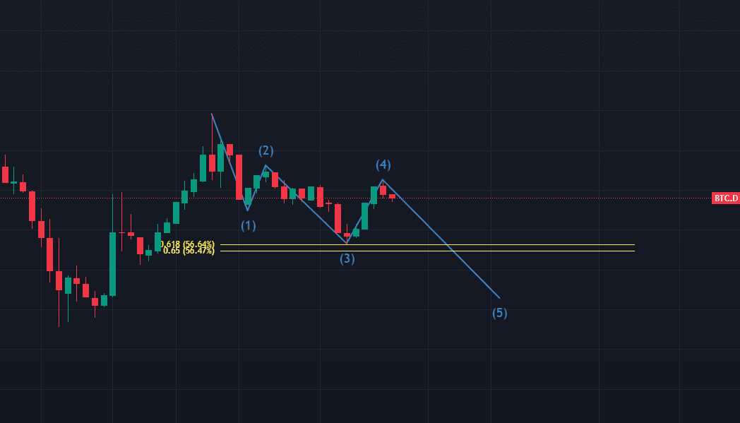 Wenn wir uns das BTC.D-Diagramm ansehen, sehen wir, dass eine Preisstruktur mit 5 Wellen entsteht. Derzeit befinden wir uns am Widerstandslevel des Goldenen Pocket und werden von hier aus fallen. Wie gesagt, BTC wird konsolidieren und ALTs werden steigen.