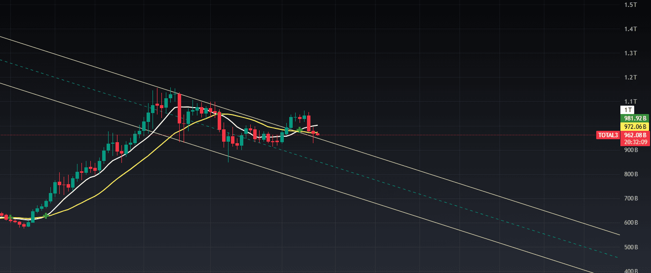 Wenn wir uns das TOTAL3-Diagramm ansehen, werden wir dies im täglichen Zeitrahmen finden. Ein bullischer MA-Cross hat erfolgreich stattgefunden und hat bereits den absteigenden Kanal durchbrochen. Wir gehen tatsächlich zum Mond.