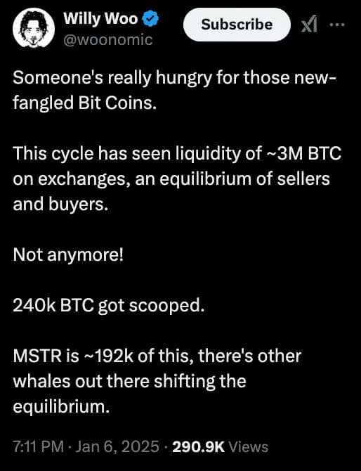 MicroStrategy kaufte unter der Leitung von Michael Saylor weitere 192.000 BTC. Insbesondere wurden 48.000 Bitcoins (entspricht 4,8 Milliarden US-Dollar) von der Börse abgezogen, der Käufer wurde jedoch nicht identifiziert.
