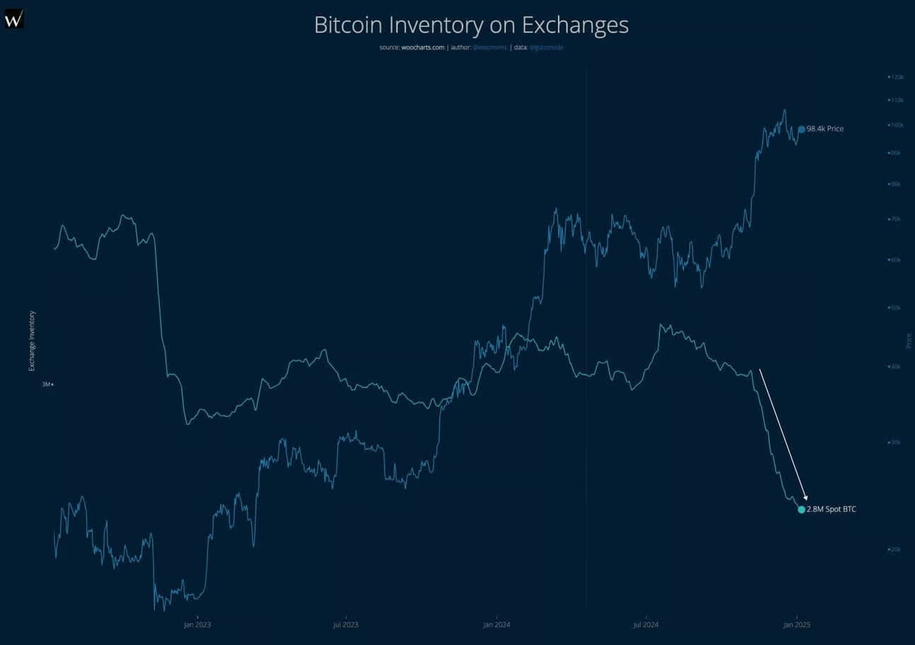 Von einem Tiefststand von 15.800 US-Dollar im Jahr 2022 hat sich der Bitcoin-Betrag an den Börsen bei etwa 3 Millionen BTC stabilisiert. Aber erst im letzten Monat hat sich das geändert.