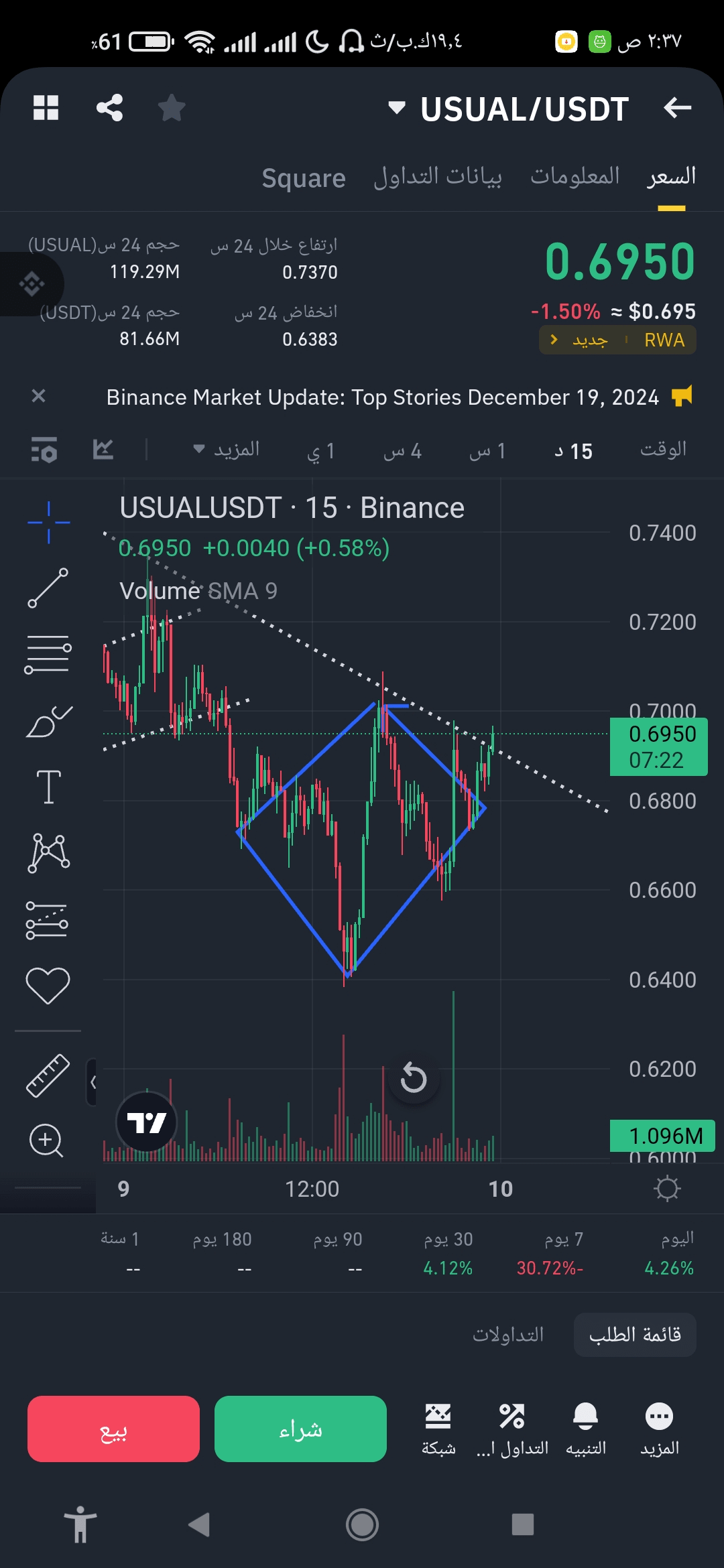 Denken Sie daran, dass der Markt möglicherweise die Dreieckslinie erneut testet, bevor er nach oben schießt.