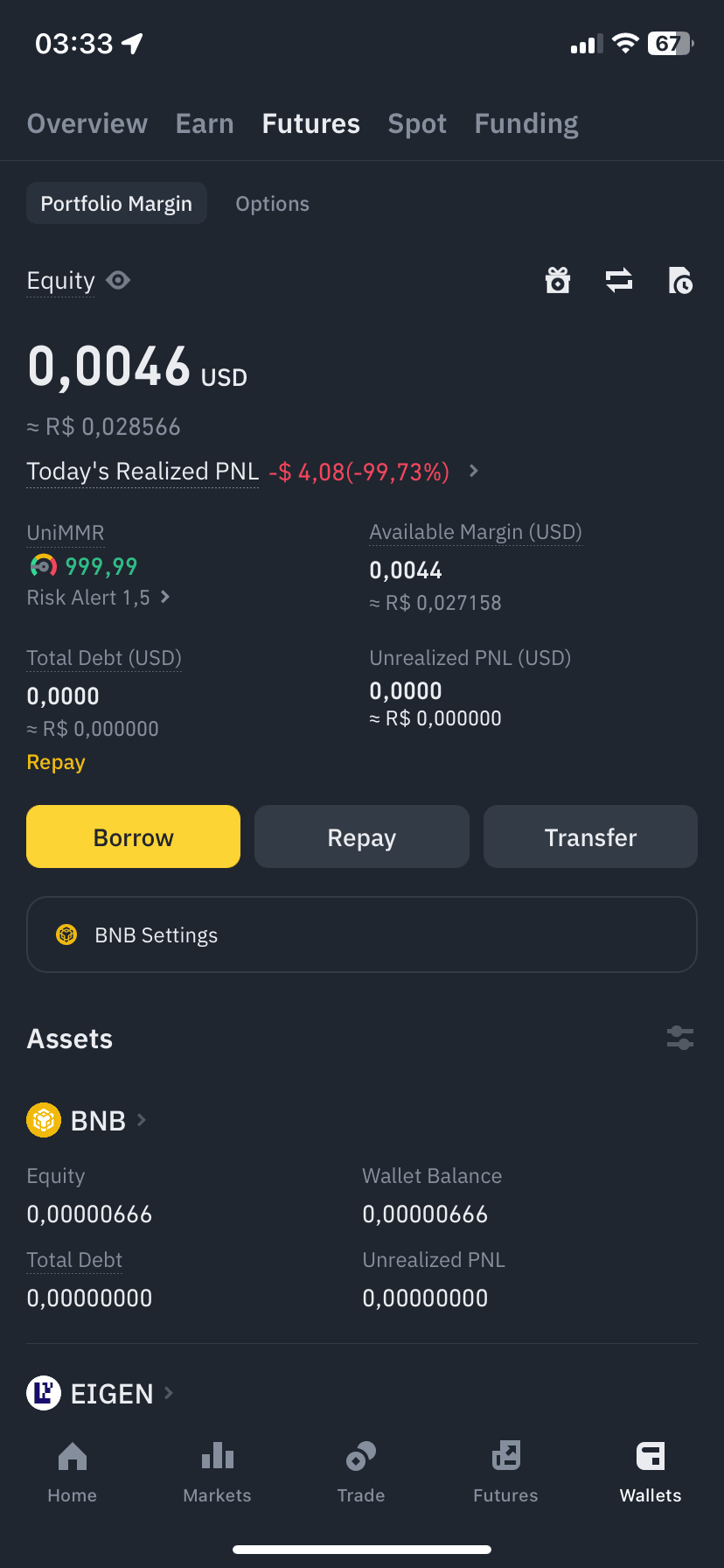 Heute war mein erster Tag, an dem ich Futures auf Binance handelte, und leider habe ich 4,08 $ verloren. Ich begann mit Trades im Wert von etwa 10 $, aber ein unerwarteter Ausverkauf führte dazu, dass ich alles verlor. 🥲