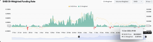 Das Verhältnis von Marktwert zu realisiertem Wert (MVRV), ein wichtiger Indikator für die Rentabilität des Tokens, zeigt, dass SHIB derzeit unterbewertet ist. Derzeit liegt der eintägige MVRV bei -3,80%, während der sieben tägige MVRV -12,02% zeigt. Ein negatives MVRV-Verhältnis deutet darauf hin, dass SHIB unter seinen historischen Anschaffungskosten gehandelt wird, was darauf hindeutet, dass der Markt es unterbewertet. Historisch gesehen waren solche Bedingungen ein Zeichen für Käufer, in den Markt einzutreten, da SHIB für eine Erholung bereit sein könnte. Darüber hinaus deutet die positive Finanzierungskostenrate des Tokens von 0,0076% weiter darauf hin, dass Händler erwarten, dass der Preis steigen wird, da sie bereit sind, einen Aufpreis zu zahlen, um Long-Positionen aufrechtzuerhalten.