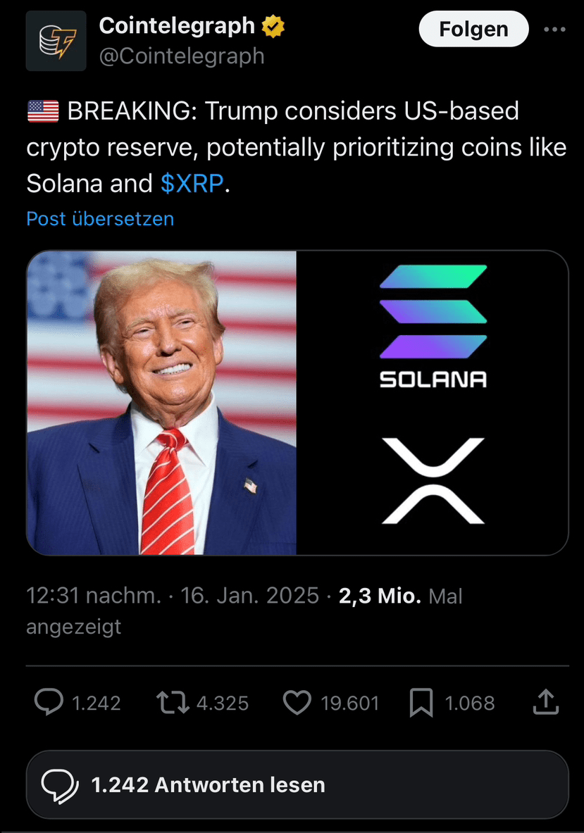 Es gibt Spekulationen über die mögliche Genehmigung eines Solana-Exchange-Traded Funds (ETF) in den Vereinigten Staaten, die bedeutende Investitionen in SOL anziehen könnte, ähnlich wie es 2024 mit Bitcoin und Ethereum geschah.