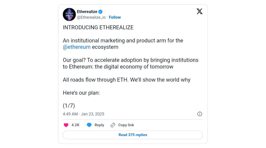 Etherealize: Das neue institutionelle Arm von Ethereum