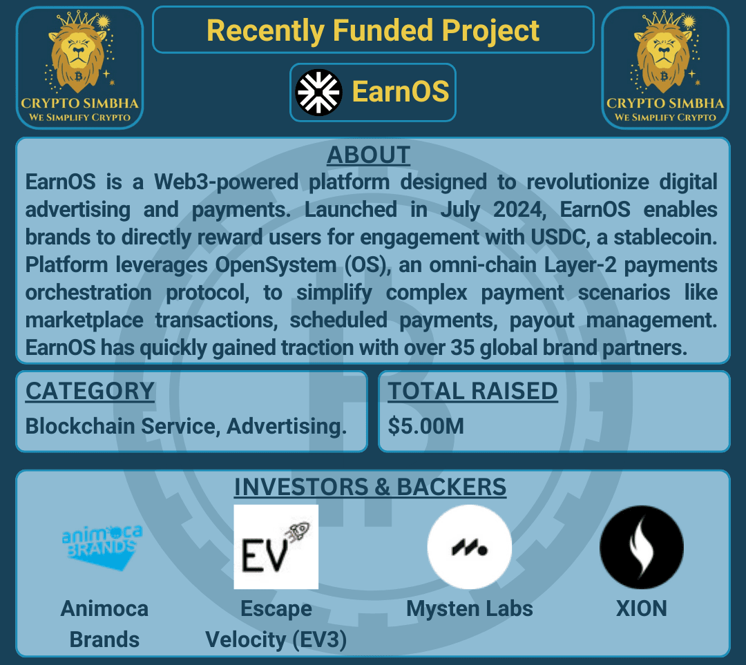 🔹 Über: EarnOS ist eine von Web3 unterstützte Plattform, die darauf abzielt, digitale Werbung und Zahlungen zu revolutionieren. Gegründet im Juli 2024, ermöglicht EarnOS Marken, Benutzer direkt für Engagement mit USDC, einer Stablecoin, zu belohnen. Die Plattform nutzt OpenSystem (OS), ein omni-chain Layer-2 Zahlungsorchestrierungsprotokoll, um komplexe Zahlungsszenarien wie Marktplatztransaktionen, geplante Zahlungen und Auszahlungsmanagement zu vereinfachen. Das Projekt zielt darauf ab, digitale Smart Wallets zu einer Standardfunktion auf iOS und Android zu machen und jedes Smartphone in eine Brieftasche zu verwandeln, um eine nahtlose Interaktion zwischen Unternehmen und Verbrauchern zu ermöglichen. EarnOS baut die Zukunft der Zahlungs- und sozialen Orchestrierung auf und befähigt Marken, direkt mit Menschen zu interagieren und sie für ihre Teilnahme zu belohnen.🚀🌐