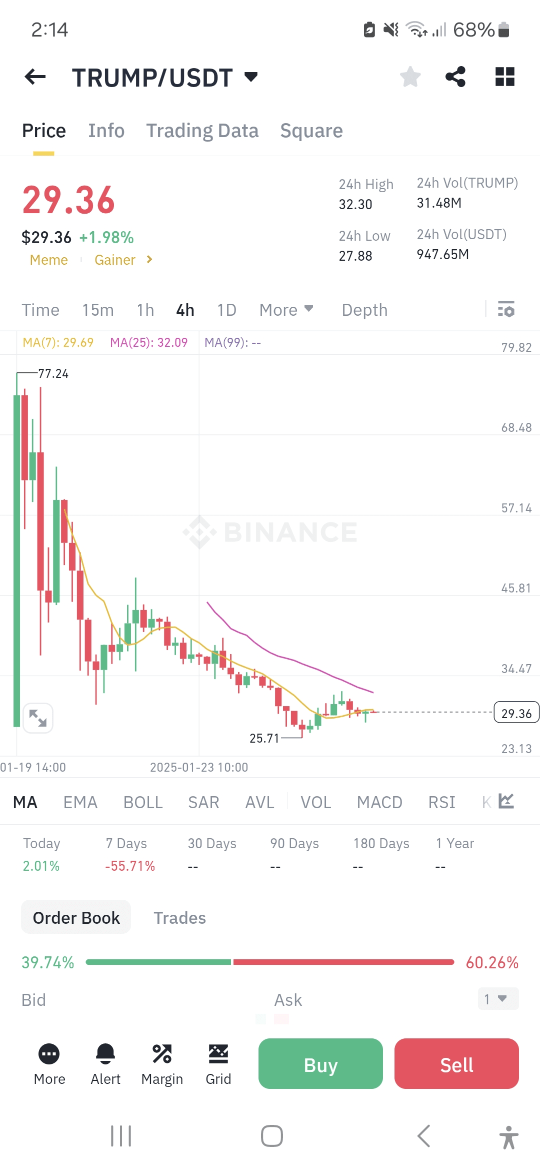 Die Antwort ist ganz einfach. Stellen Sie sich vor, Sie waren auf dem Markt, als die Trump-Münze zum ersten Mal gelistet wurde und um 300x gestiegen ist. Was würden Sie tun? Sie würden wahrscheinlich irgendwann Gewinne buchen. Genau das ist hier passiert. Diejenigen, die mit großen Beträgen gespielt haben, haben ihre Gewinne gebucht, und die Verkaufsaufträge haben die aktuelle Marktsituation verursacht.