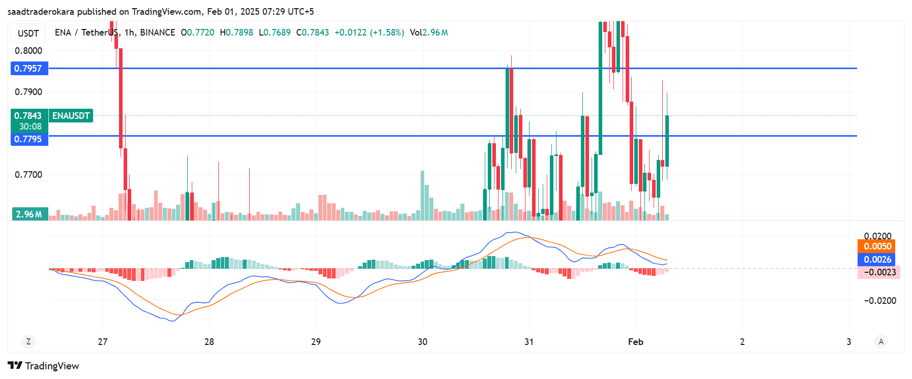 Bullischer Trend: ENA befindet sich in einem Aufwärtstrend mit dem Potenzial, 0.8000 zu durchbrechen, wenn das Volumen die Bewegung unterstützt.