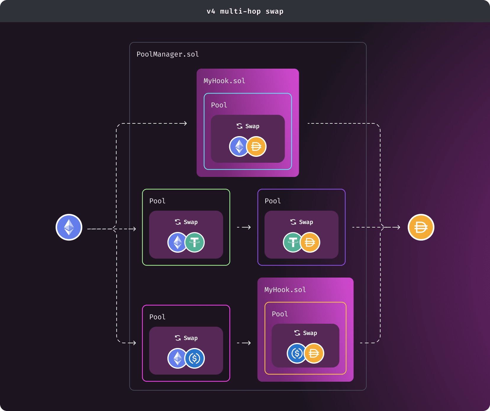 Native ETH Unterstützung: Die V4-Version unterstützt während des Ausführungsprozesses des Handelsvertrags den direkten Handel mit nativer ETH, sodass Benutzer ETH nicht in ERC-20-Token umwandeln müssen, was die Schritte und damit verbundene Kosten reduziert.