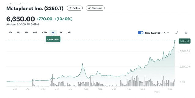 Das japanische Unternehmen Metaplanet Inc. hat seinen Aktienkurs im vergangenen Jahr um 4.056% steigen sehen, nachdem es eine „Bitcoin-zuerst“-Strategie übernommen hat.
