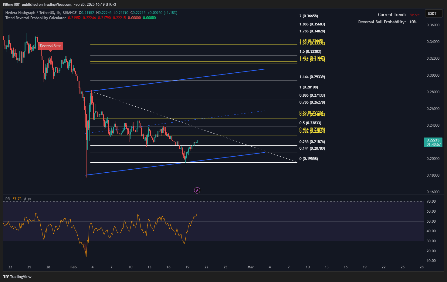 $HBAR brechende Konsolidierung?! 🔓 Augen auf WICHTIGE Widerstandsniveaus! 👀 4H-Chart zeigt einen STARKEN Rückprall! ⏫ RSI STEIGT! 📈 MACD dreht auf BULLISCH! ✅ Chart-Signale sind LAUT! 📢