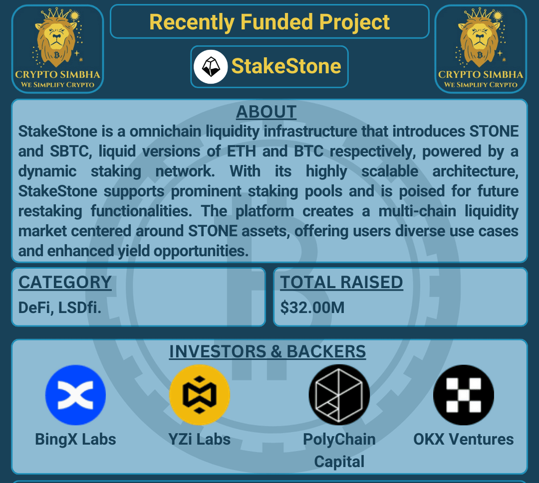 🔹Über: StakeStone ist eine omnichain Liquiditätsinfrastruktur, die STONE und SBTC, flüssige Versionen von ETH und BTC, einführt, die von einem dynamischen Staking-Netzwerk unterstützt werden. Mit seiner hochgradig skalierbaren Architektur unterstützt StakeStone prominente Staking-Pools und ist bereit für zukünftige Restaking-Funktionalitäten. Die Plattform schafft einen Multi-Chain-Liquiditätsmarkt, der sich um STONE-Vermögenswerte dreht und den Benutzern unterschiedliche Anwendungsfälle und verbesserte Ertragsmöglichkeiten bietet. StakeStone bietet drei Arten von liquiden Vermögenswerten: STONE ETH (ertragbringendes flüssiges ETH), SBTC (flüssiges BTC) und STONEBTC (ertragbringendes BTC). Das Protokoll adressiert die Fragmentierung der On-Chain-Liquidität und Opportunitätskosten für ETH-Staker und BTC-Inhaber. Seit seiner Gründung im Jahr 2023 hat StakeStone über 22 Millionen USD von prominenten Krypto-Fonds wie YZi (Binance) Labs, Polychain Capital und Hashkey Capital gesammelt. Der innovative Ansatz der Plattform zielt darauf ab, die Benutzererfahrung zu verbessern und Web3-Entwicklern umfassende Werkzeuge zur Verfügung zu stellen, um ein breiteres Spektrum an Ertragsmöglichkeiten anzubieten.🚀🌐