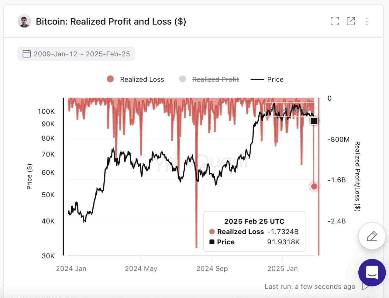 Bitcoin-Inhaber verzeichneten gestern die größten Verluste seit August 2024: über 1,7 Milliarden Dollar.
