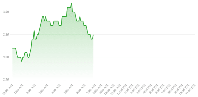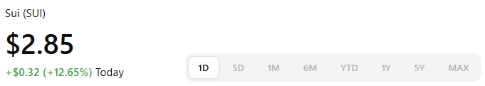 Am 28. Februar 2025 wird Sui (SUI) zu einem Preis von 2,85 $ gehandelt, was einem Rückgang von 12,65 % in den letzten 24 Stunden entspricht.