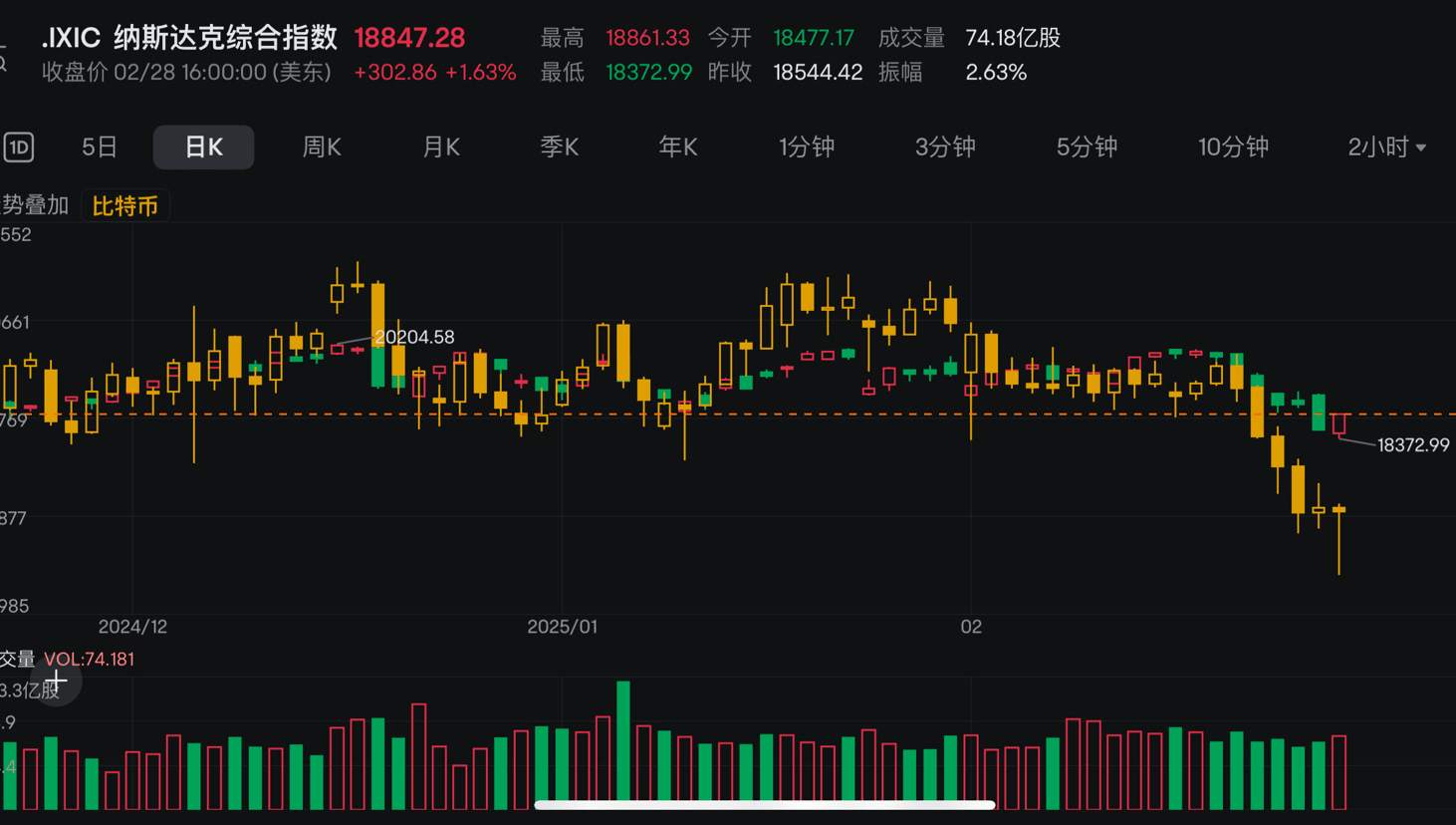 Btc与纳斯达克走势叠加图!