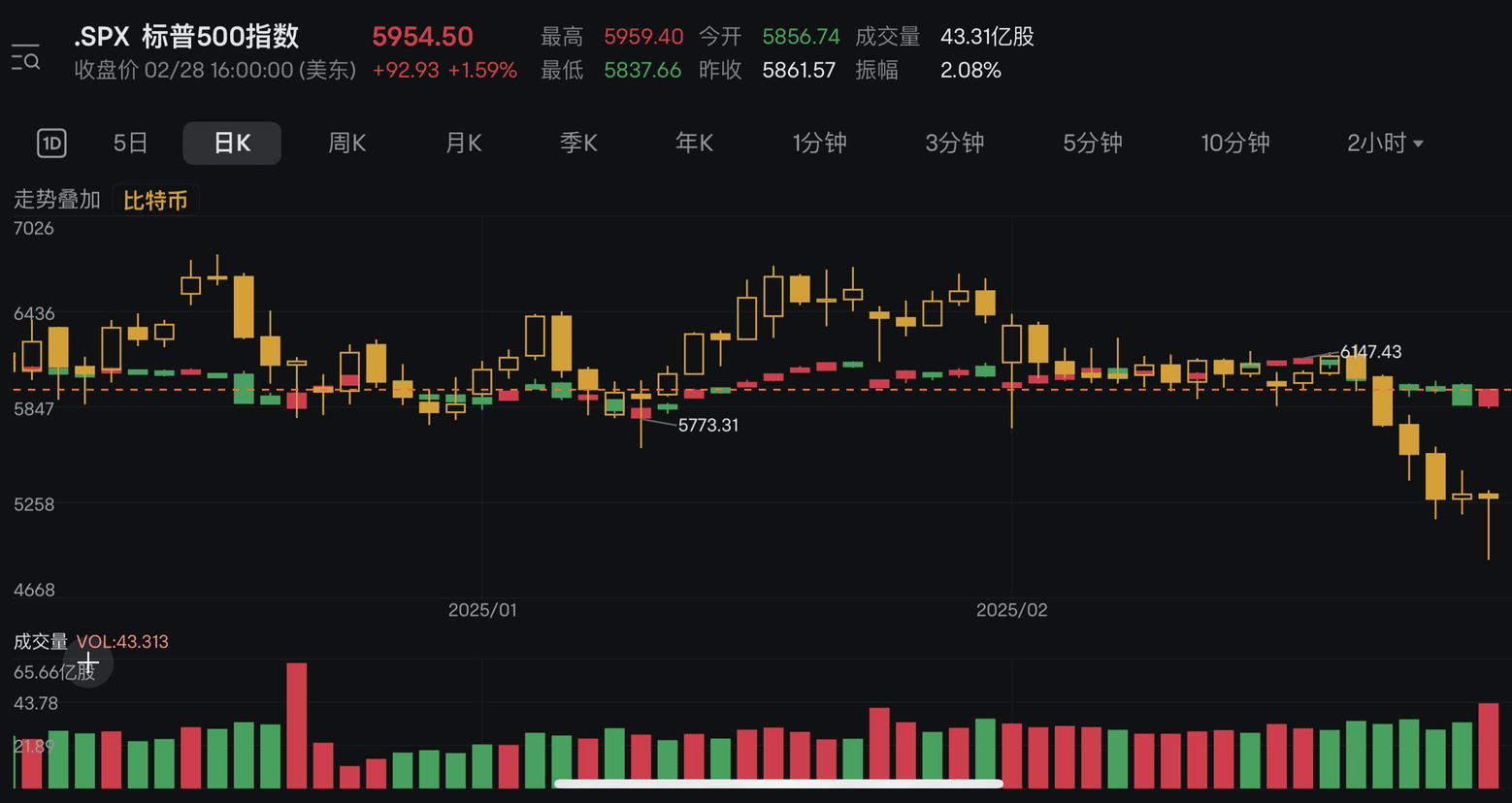 Btc与标普500走势叠加图!